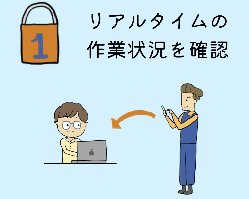 今まで電話やメールなどで行っていた「作業完了連絡」や「写真報告」が特別な設備や機材を用意せずに、リアルタイムの状況を「即時に把握することが可能」です。